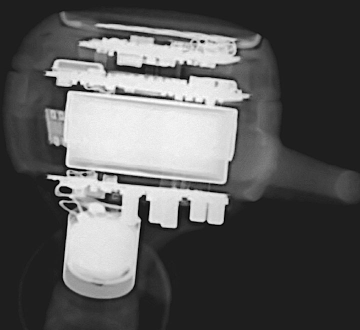 X-ray of an earbud showing how the inside is packed with electronics. Shrinking sensors will free up invaluable space.